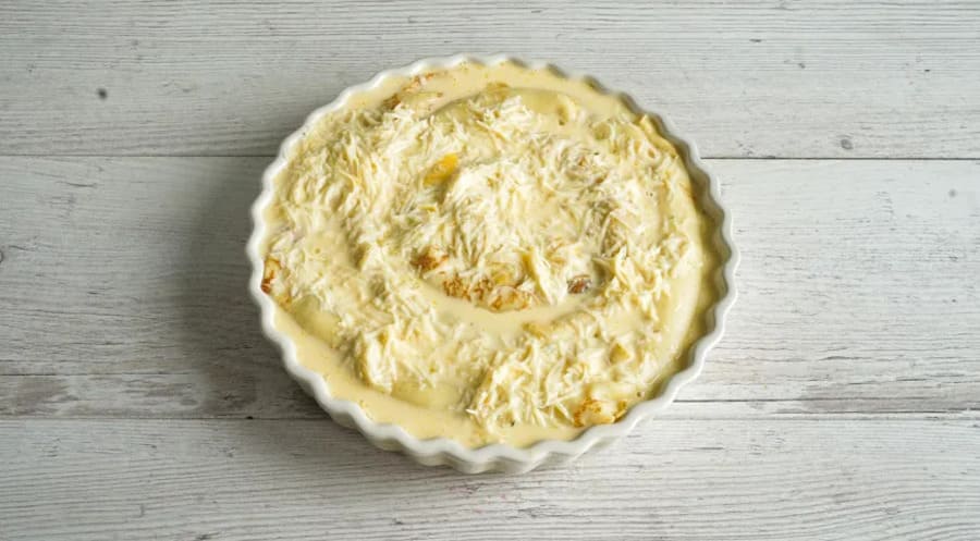 Запекать пирог следует при температуре около 180 °C примерно 20–30 минут, пока сыр не расплавится, а верх не станет аппетитно золотистым. Такой пирог прекрасно сочетается с лёгким салатом из свежих овощей или сметанным соусом и подаётся как самостоятельное, сытное блюдо.