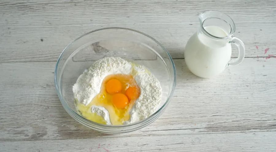 Тесто для блинов замешивается из просеянной муки, яиц, молока и щепоти соли. Важно тщательно размешать, чтобы не осталось комочков и тесто приобрело однородную консистенцию. После этого его оставляют «отдохнуть» — так блины получаются более мягкими и эластичными. На хорошо разогретой сковороде с небольшим количеством масла блины жарят до золотистого оттенка с двух сторон. Промежуточно их складывают стопкой, чтобы они сохранили тепло и влагу.