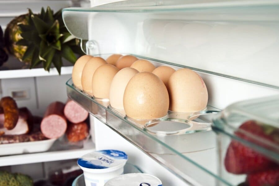 На дверце холодильника обычно расположена специальная форма под яйца, но именно эта зона считается самой тёплой и подверженной частым перепадам температуры. Каждый раз, когда вы открываете дверь, температура поднимается, что сокращает срок годности продукта. Поэтому оптимальное место — это основная полка, желательно ближе к задней стенке, где температура самая стабильная.