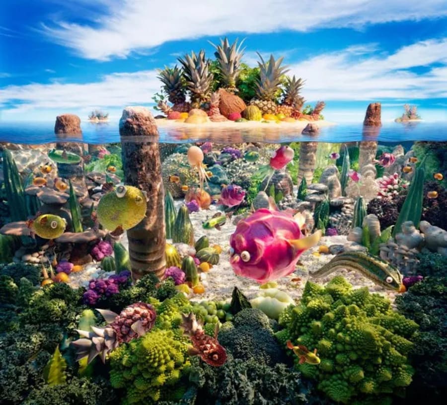 Карл Уорнер — британский фотограф и художник, который прославился благодаря удивительным пейзажам, созданным полностью из продуктов питания. Его работы сочетают художественную выразительность, техническую точность и уникальное умение превращать повседневные ингредиенты в фантастические миры. На первый взгляд сложно поверить, что перед зрителем не живописная картина или цифровая графика, а искусно выстроенная композиция из фруктов, овощей, рыбы, хлеба и других продуктов. Именно этот контраст и делает творчество Уорнера столь узнаваемым и популярным во всём мире.